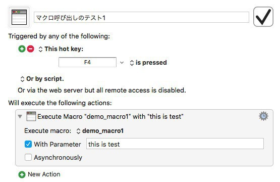 にあるように、Execute Macroアクションを使用する。